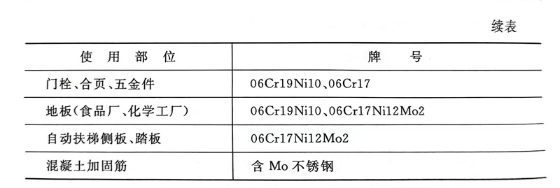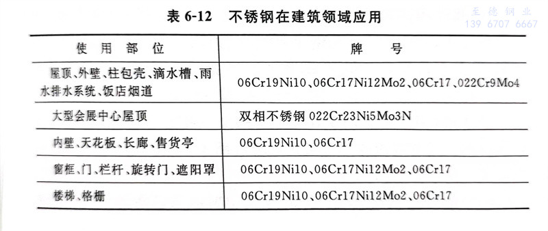 不銹鋼在(zai)建(jian)筑領域應用,列于(yu)表(biao)6-12。