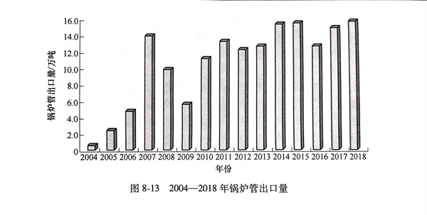 1990-2018年(nian)全國發電總裝機(ji)容(rong)量(liang)和火電機(ji)組裝機(ji)容(rong)量(liang)如(ru)圖8-11所示。2004-2018年(nian)鍋爐管進出口量(liang)如(ru)圖8-12和圖8-13所示。