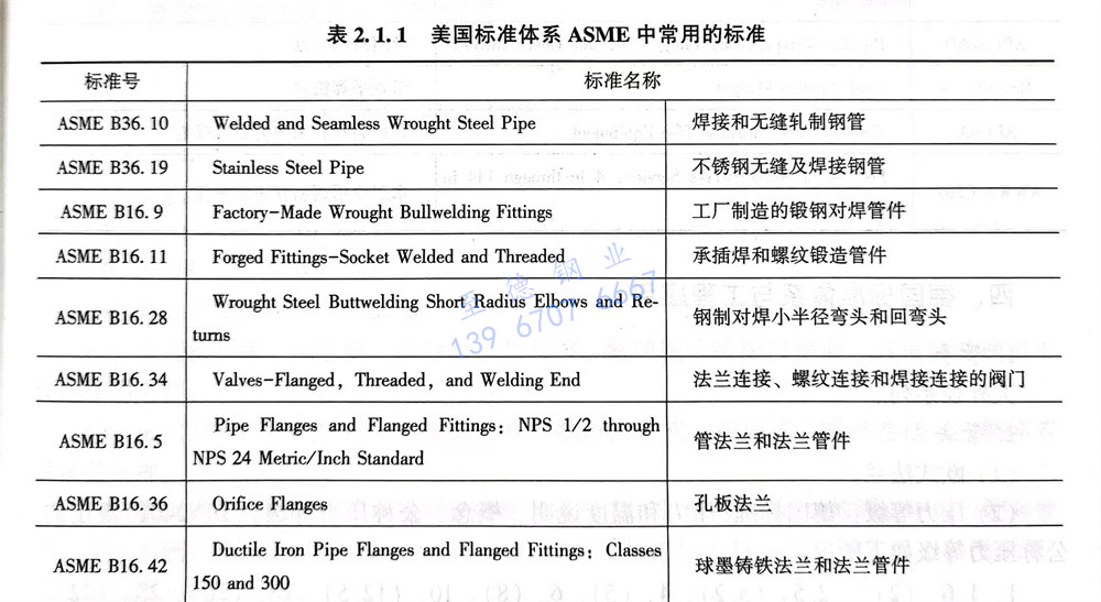 美國標準(zhun)體(ti)系ASME 中常用標準(zhun)見表2.1.1。