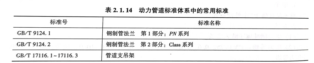 法蘭標(biao)(biao)準(zhun)常(chang)用(yong)PN系列和Class系列兩類。動力(li)管道標(biao)(biao)準(zhun)體系中的常(chang)用(yong)標(biao)(biao)準(zhun)見表2.1.14。