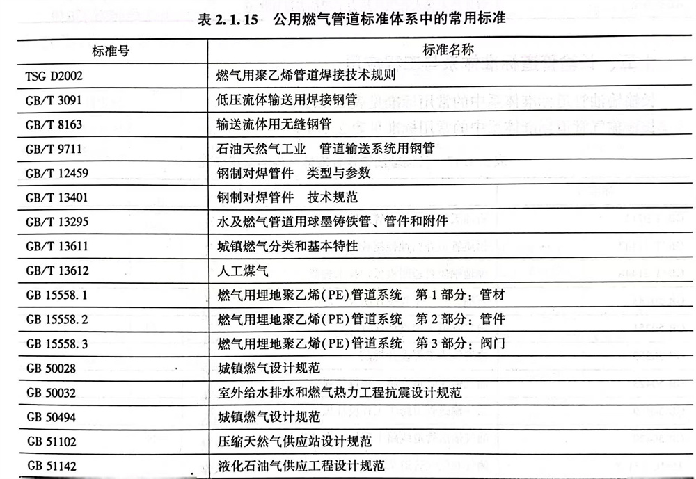 公(gong)用燃氣管(guan)道(dao)標準體系中的(de)常用標準見表(biao)2.1.15。
