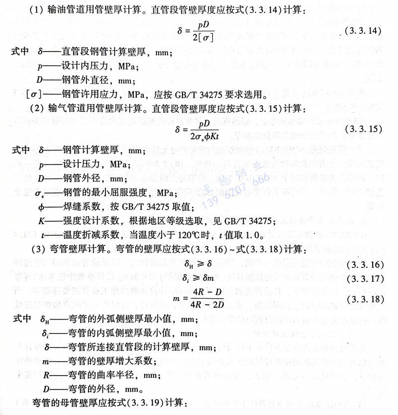 (2)輸(shu)氣(qi)管道用管壁厚(hou)計算(suan)。直(zhi)管段管壁厚(hou)度應按式(3.3.15)計算(suan):