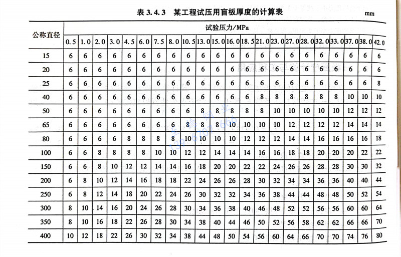 某(mou)工程計(ji)算試壓(ya)用盲板厚(hou)度(du),管(guan)道設計(ji)人員根據式(shi)(3.4.22),并根據管(guan)道特性參數,進行計(ji)算,如表3.4.3所示(shi)。
