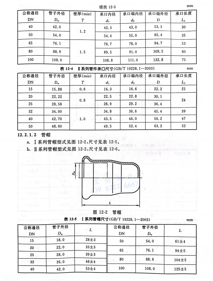 a.Ⅰ系列(lie)管件承口(kou)型式見圖12-1,尺(chi)寸見表12-3。
