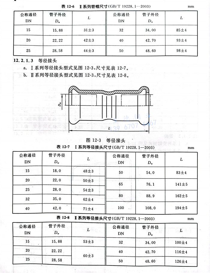 b. Ⅱ系列等徑接(jie)頭(tou)型式見(jian)圖12-3,尺寸見(jian)表12-8。