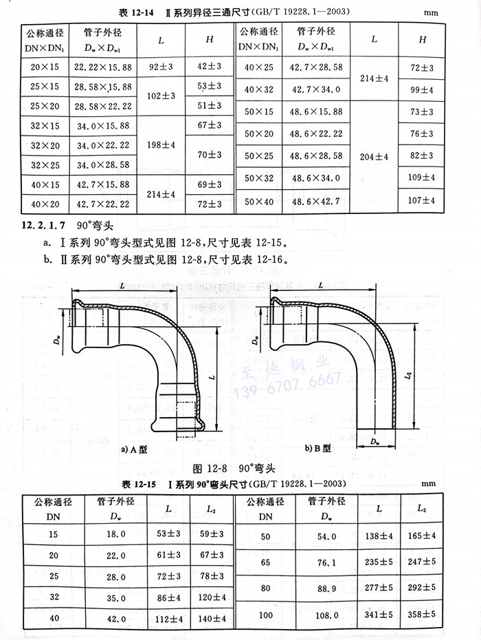 a.Ⅰ系列90°彎頭(tou)型式見(jian)圖12-8,尺寸見(jian)表12-15。