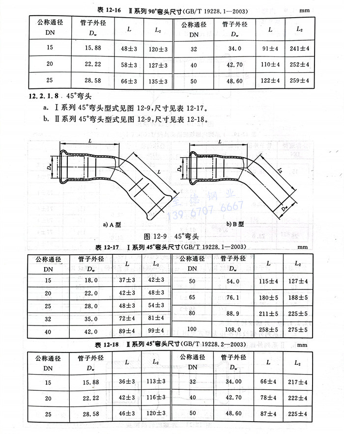 b. Ⅱ系列45°彎頭型式見(jian)(jian)圖12-9,尺寸見(jian)(jian)表12-18。
