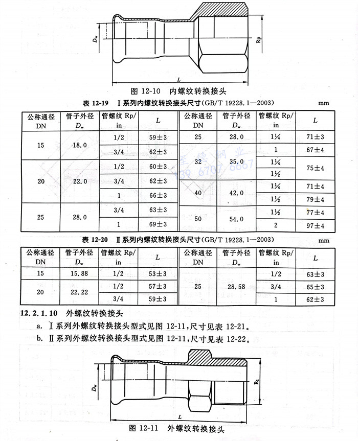 b. Ⅱ系(xi)列內(nei)螺紋轉(zhuan)換接頭型(xing)式見圖12-10,尺寸(cun)見表(biao)12-20。