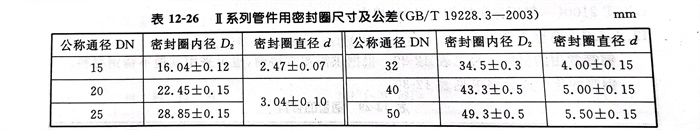 b. Ⅱ系(xi)列管件用橡膠O形密封圈公差見表12-26。