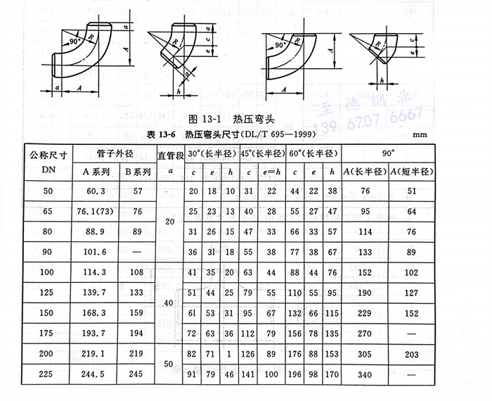 a. 熱(re)壓彎頭結(jie)構型(xing)式(shi)見圖13-1,尺寸(cun)見表(biao)13-6。