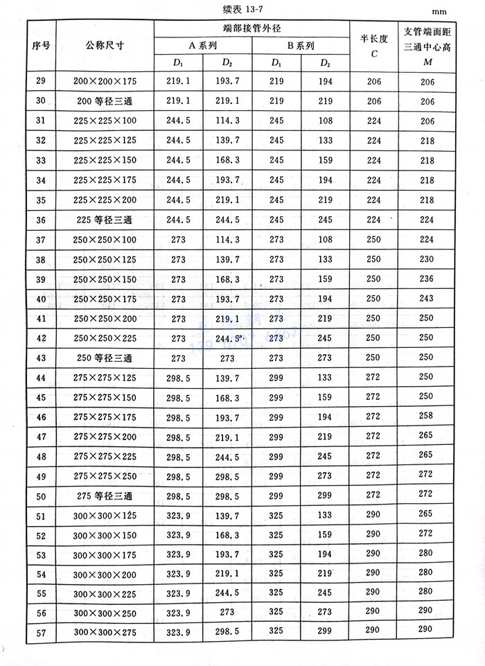 b. 熱壓T型三通結構(gou)型式(shi)見(jian)圖13-2,尺寸見(jian)表13-7。
