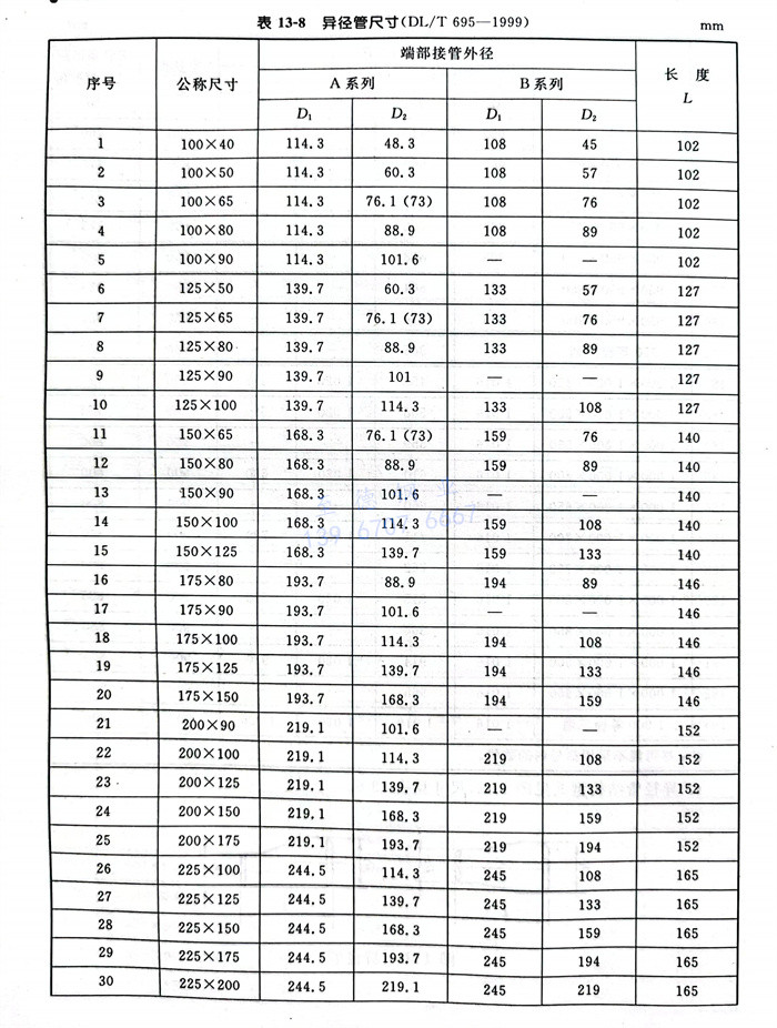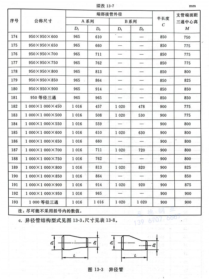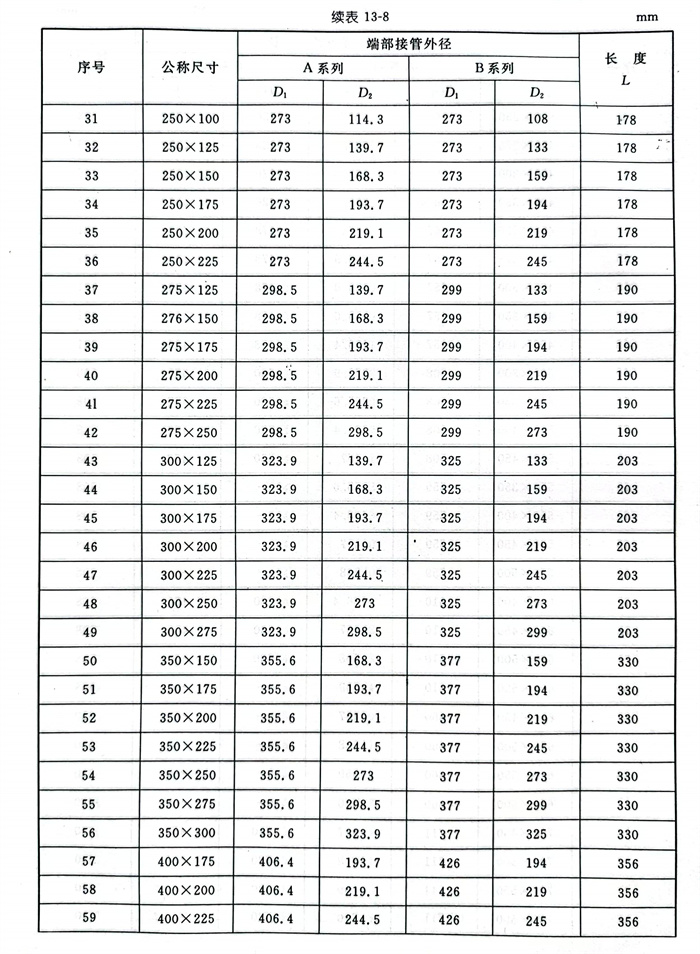 c. 異(yi)徑管結構型式見圖13-3,尺寸見表13-8。