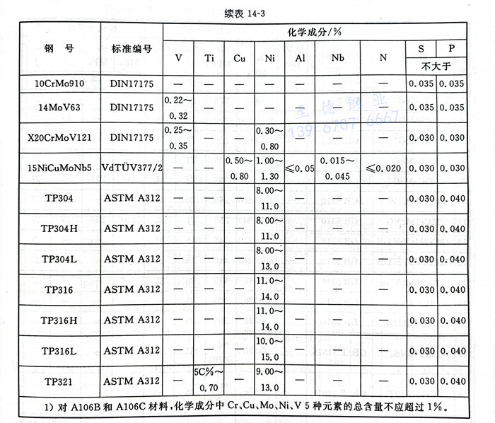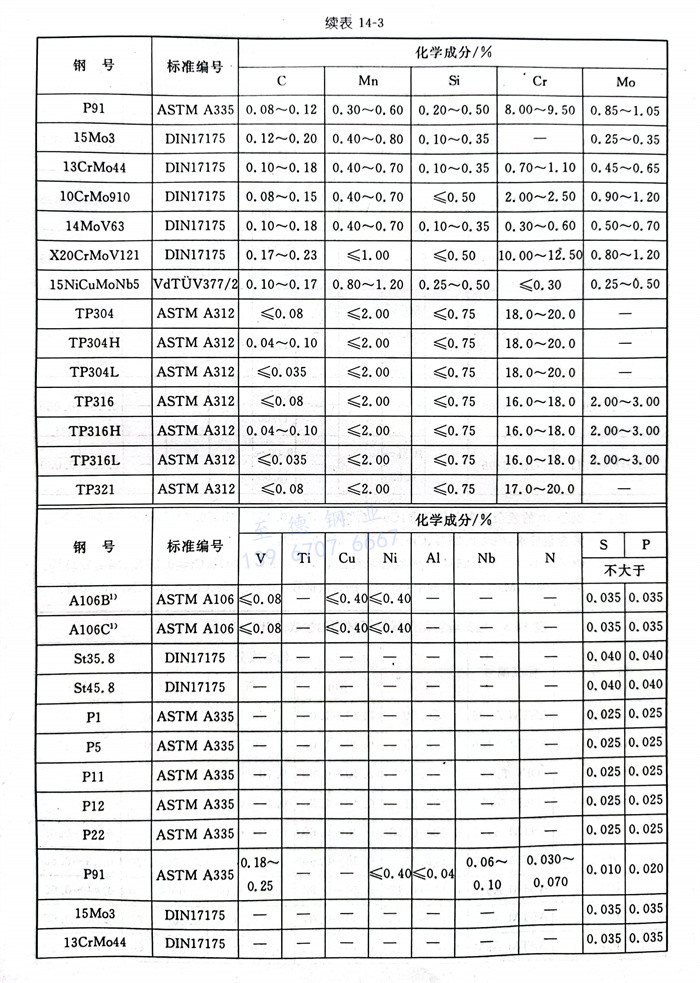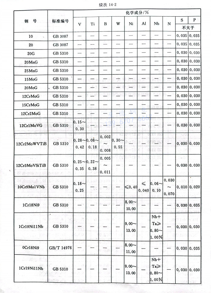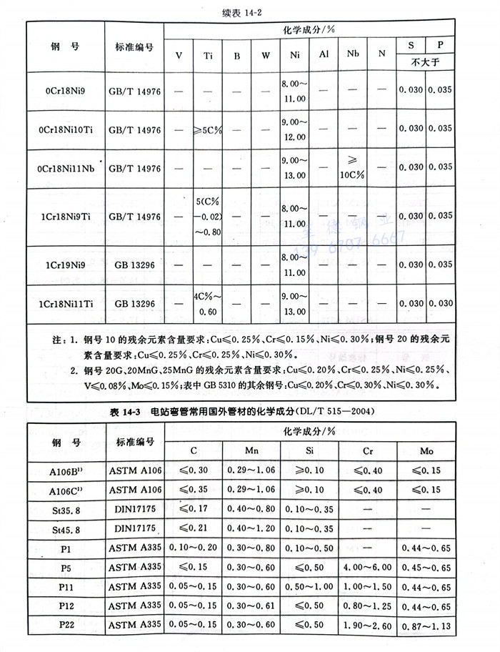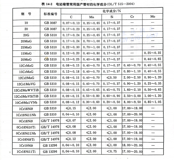 b. 電(dian)站彎管常用國外管材的化(hua)學(xue)成分見表14-3。