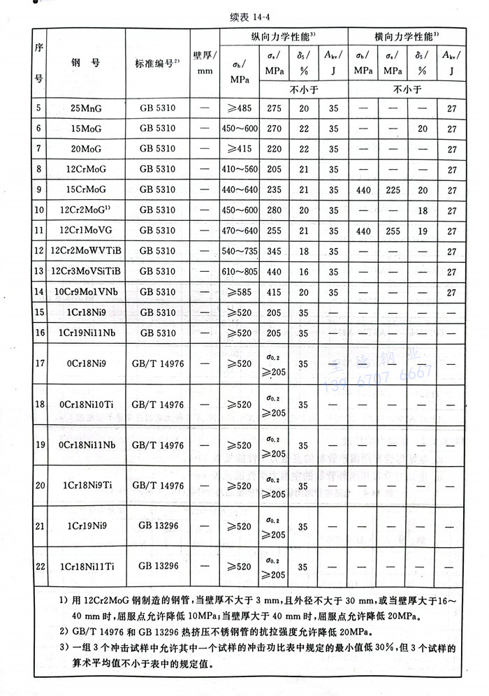 b. 電站彎管常用(yong)國(guo)外管材的室溫力(li)學性能見表14-5。