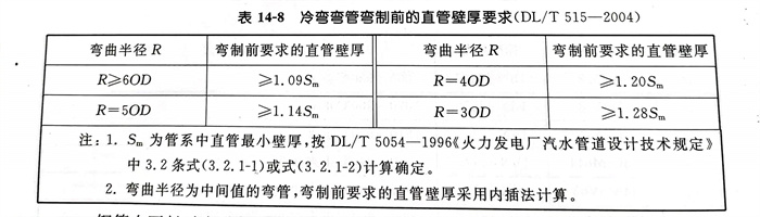 d. 用作不(bu)銹鋼彎管的直管,其最小壁厚的選擇見表14-7及表14-8。彎制時應將直管較厚的一側置于彎管的受拉側。