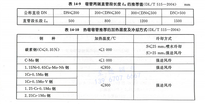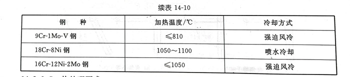 d.熱(re)(re)彎彎管推薦(jian)的(de)加熱(re)(re)溫度及冷卻(que)方式見表14-10。