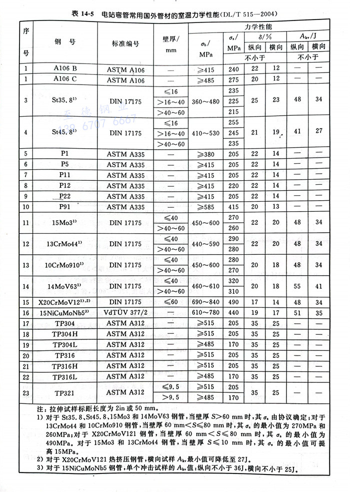 不銹鋼管材料(liao)應(ying)按質量(liang)合(he)(he)格證書或質量(liang)保(bao)證書進(jin)行質量(liang)驗收。質量(liang)合(he)(he)格證書或質量(liang)保(bao)證書應(ying)標明鋼號(hao)、化學(xue)(xue)成分、力(li)學(xue)(xue)性(xing)能(常用(yong)管材化學(xue)(xue)成分及(ji)分學(xue)(xue)性(xing)能見表14-2~表14-5),以及(ji)必要(yao)的熱處理工藝等。數(shu)據不全的應(ying)進(jin)行補(bu)檢,補(bu)檢的方法、范(fan)圍、數(shu)量(liang)應(ying)符合(he)(he)國家標準(zhun)或行業(ye)標準(zhun)。進(jin)口鋼管除應(ying)符合(he)(he)合(he)(he)同規定的有(you)關國家的技術標準(zhun)外,還應(ying)有(you)入境貨物檢驗檢疫證明。