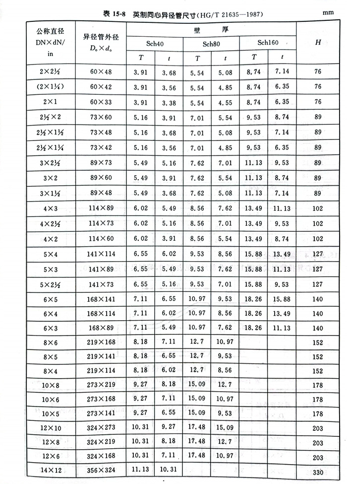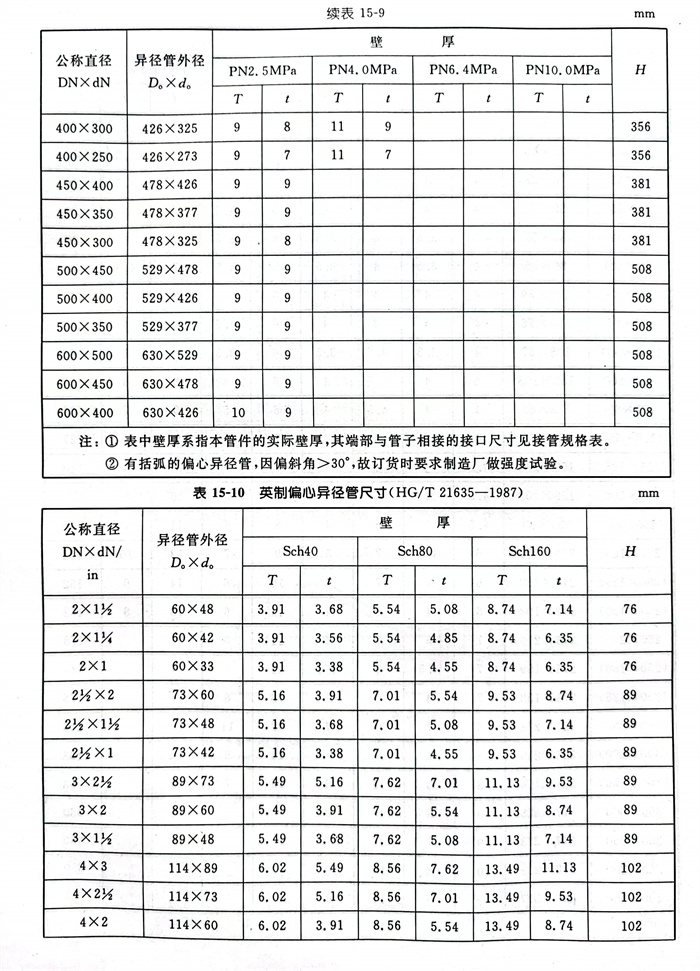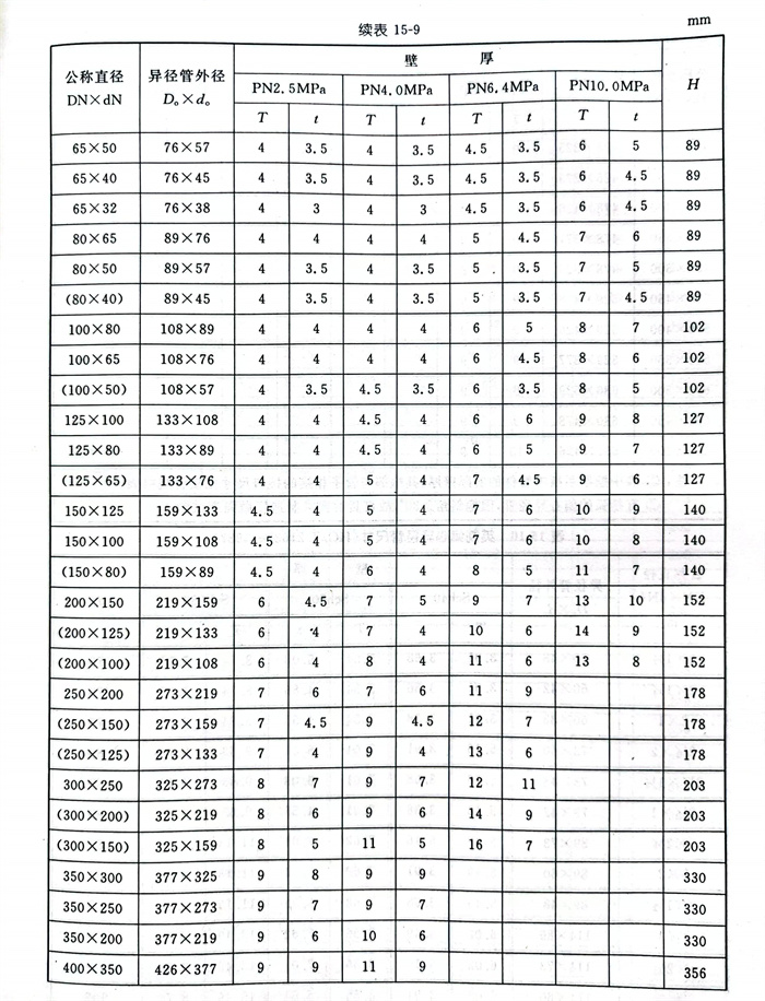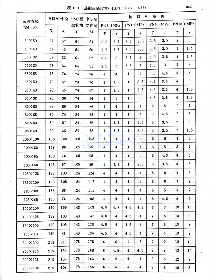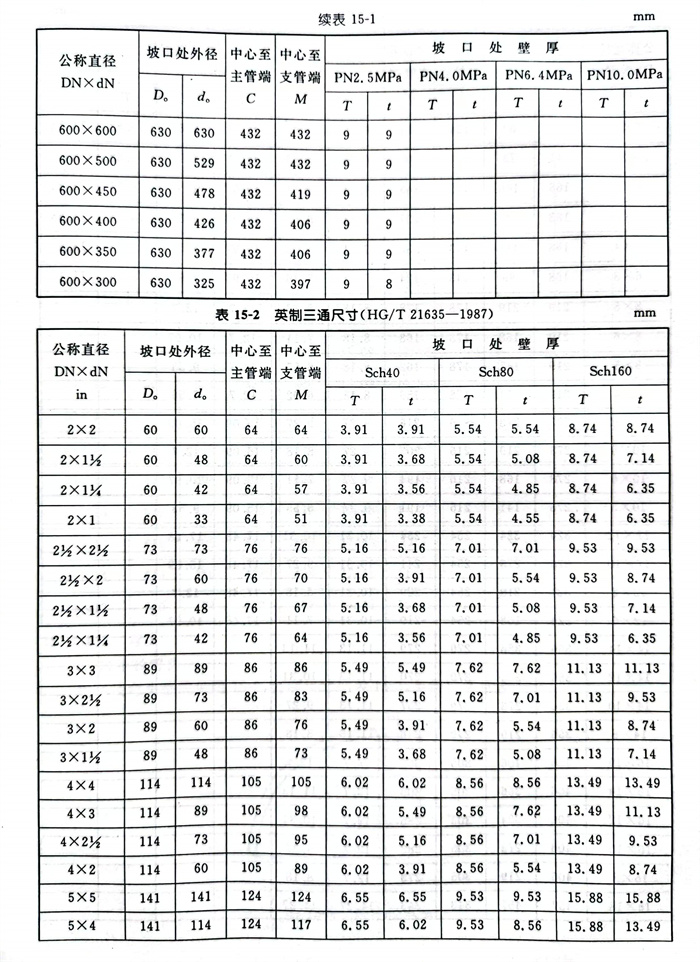 同心異徑管型式見(jian)圖(tu)15-4,公制(zhi)三(san)通(tong)(tong)尺(chi)寸見(jian)表(biao)(biao)15-7;英制(zhi)三(san)通(tong)(tong)尺(chi)寸見(jian)表(biao)(biao)15-8。