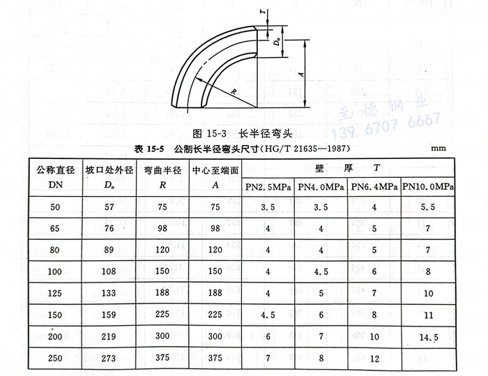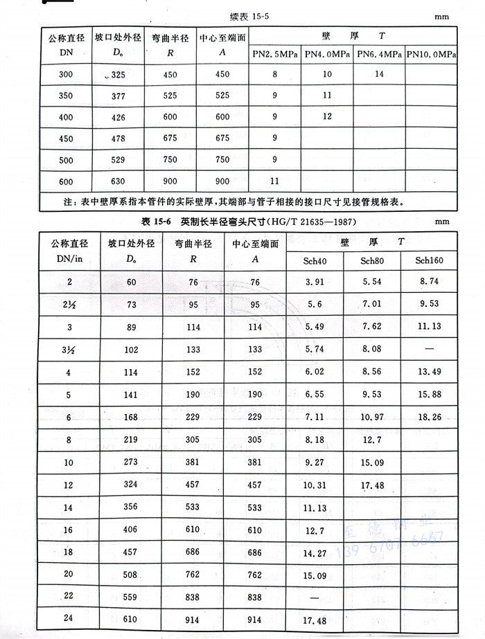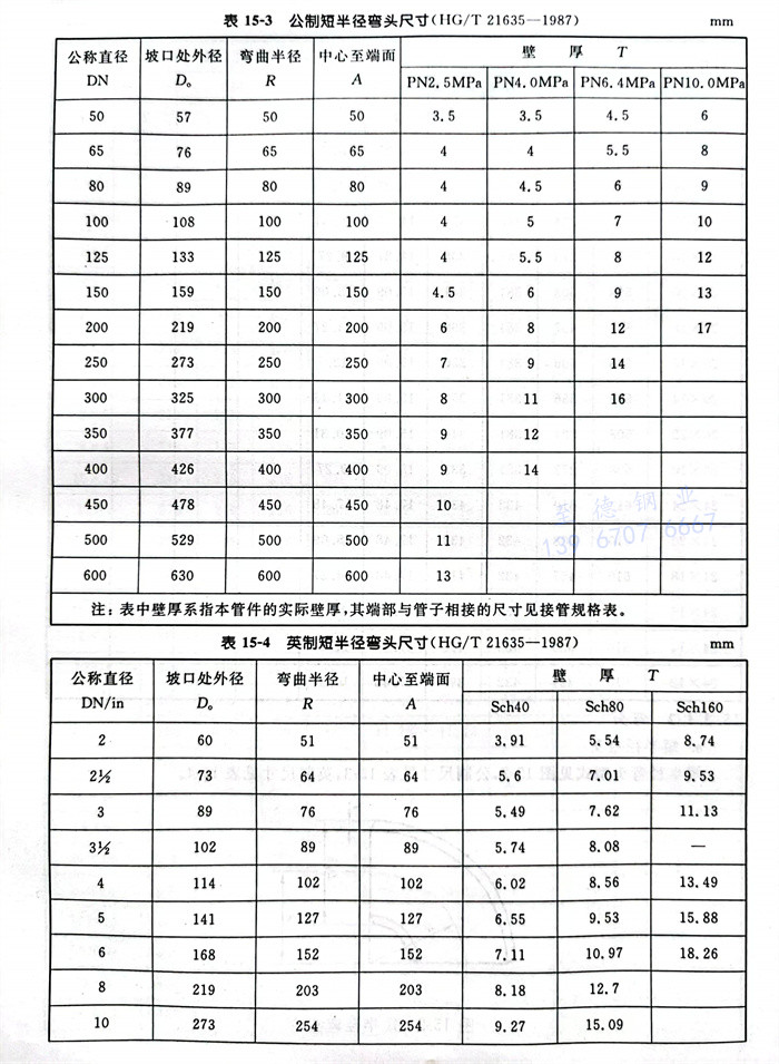 短半徑彎頭型式見圖15-2,公制三通(tong)(tong)尺(chi)(chi)寸見表15-3;英制三通(tong)(tong)尺(chi)(chi)寸見表15-4。