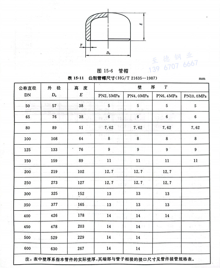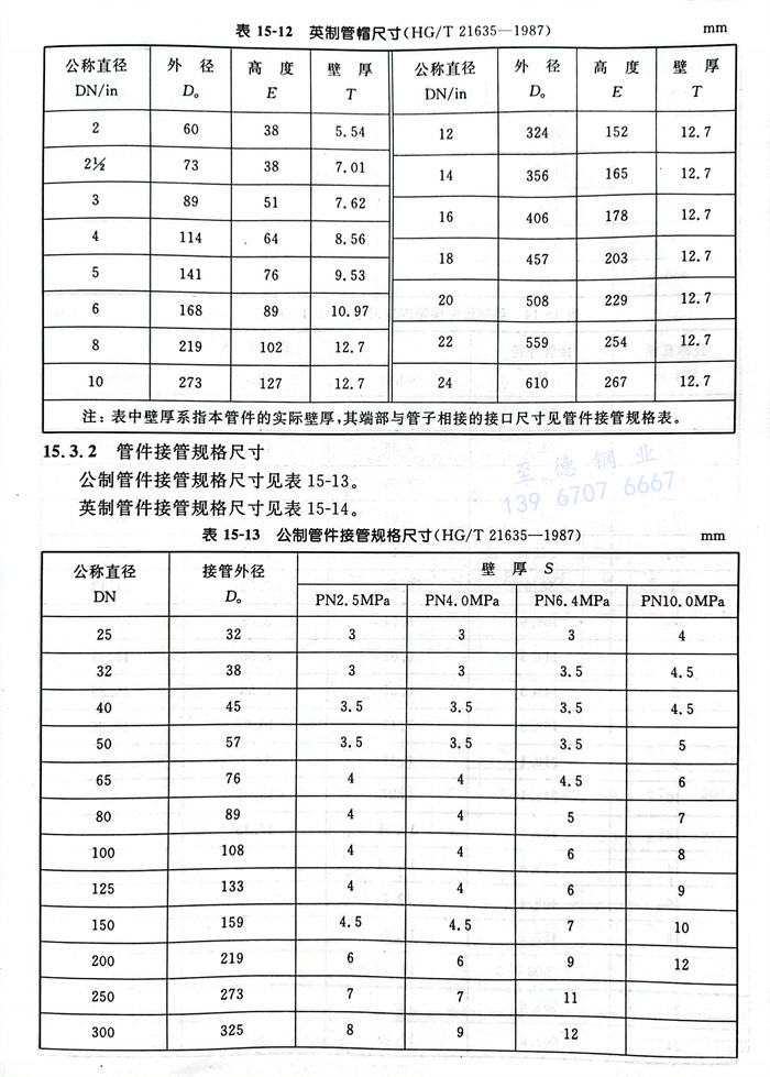 管帽型式見(jian)圖15-6,公(gong)制(zhi)三通(tong)尺寸(cun)見(jian)表15-11;英制(zhi)三通(tong)尺寸(cun)見(jian)表15-12。