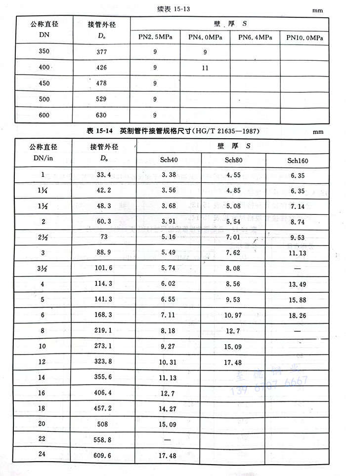 公制管件(jian)接管規(gui)格尺寸見表 15-13