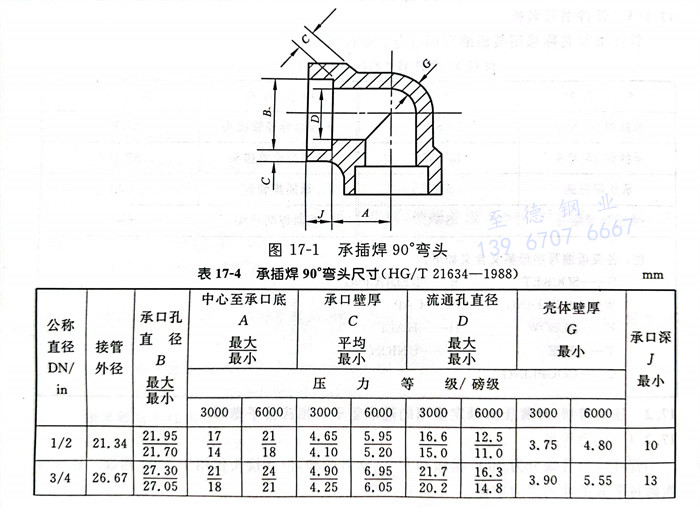 承插(cha)焊(han)90°彎頭型式見圖17-1,尺寸見表17-4。