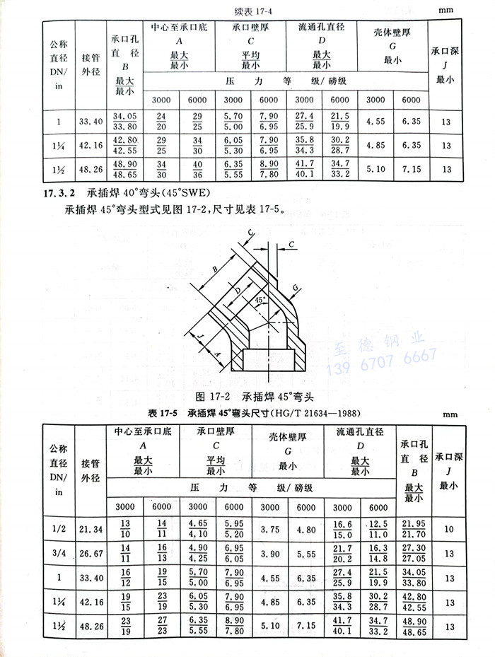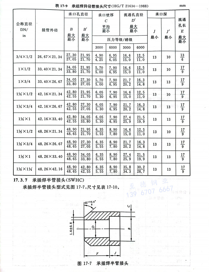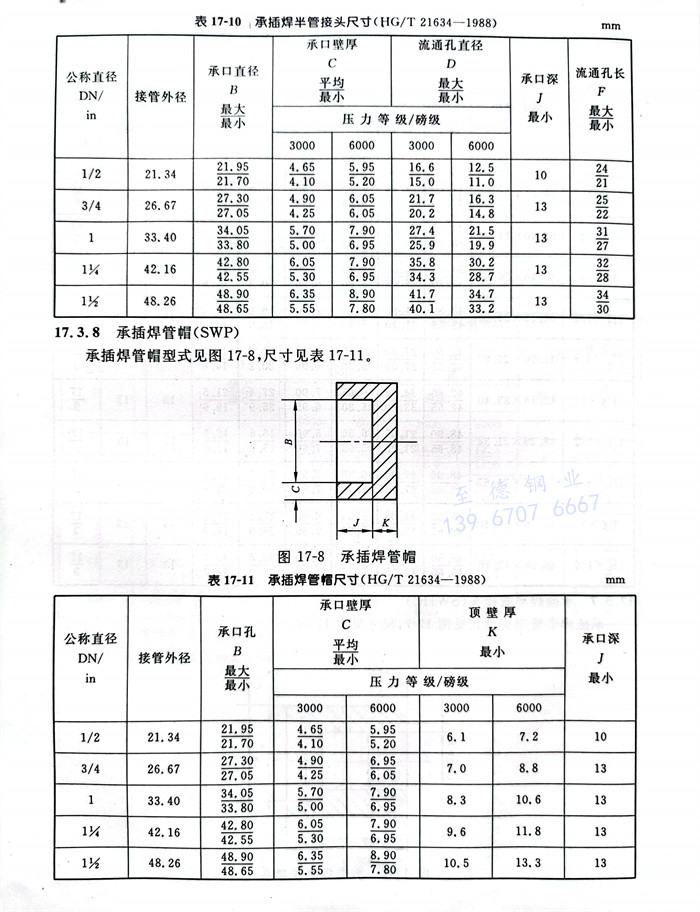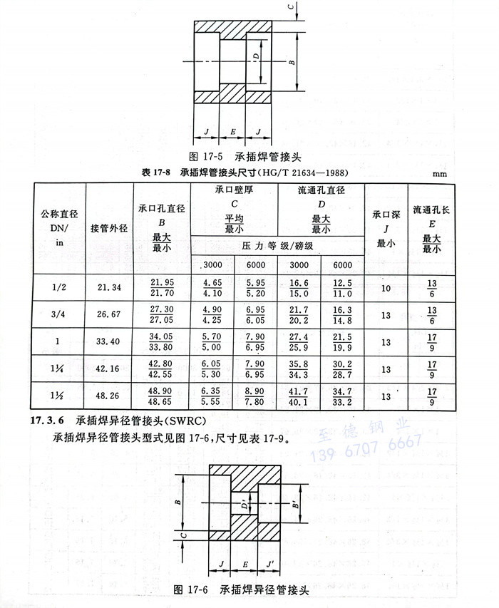 承(cheng)插焊管接頭型式見(jian)圖17-5,尺寸(cun)見(jian)表(biao)17-8。