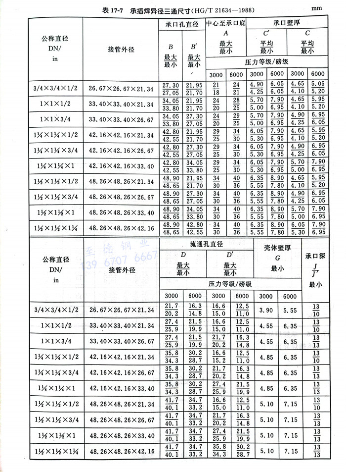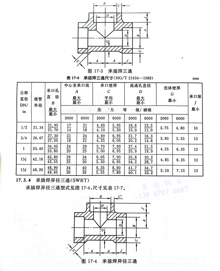 承插焊三通型式見圖17-3,尺(chi)寸見表(biao)17-6。