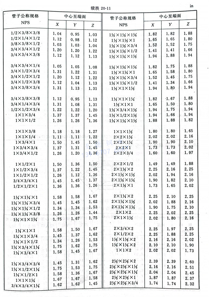 管(guan)件中心至(zhi)端面的(de)(de)尺寸(cun)允(yun)許公差見(jian)表20-25(檢(jian)驗公差)。端面至(zhi)端面的(de)(de)尺寸(cun)公差及(ji)接頭(tou)和異徑接頭(tou)的(de)(de)長度(du)公差應為表20-25中所列值的(de)(de)兩(liang)倍。控制異徑管(guan)件最大(da)開孔(kong)(kong)尺寸(cun)的(de)(de)公差應適(shi)用于所有(you)開孔(kong)(kong)。這(zhe)些公差不適(shi)用于180°彎頭(tou)和管(guan)帽。