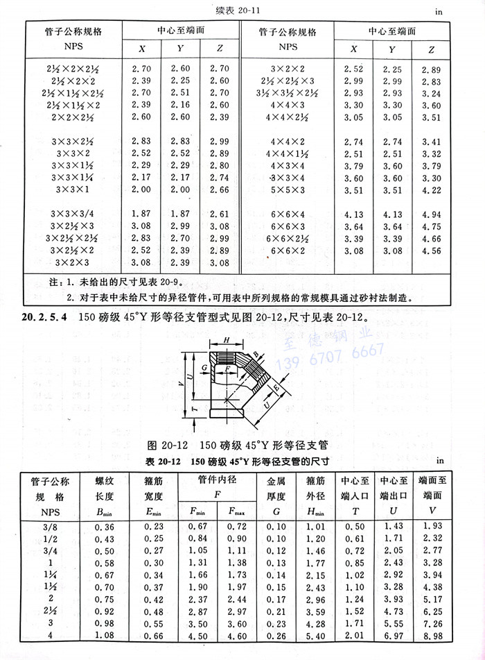 150磅級(ji)45°Y形等徑(jing)支管型式見(jian)圖20-12,尺寸見(jian)表20-12。