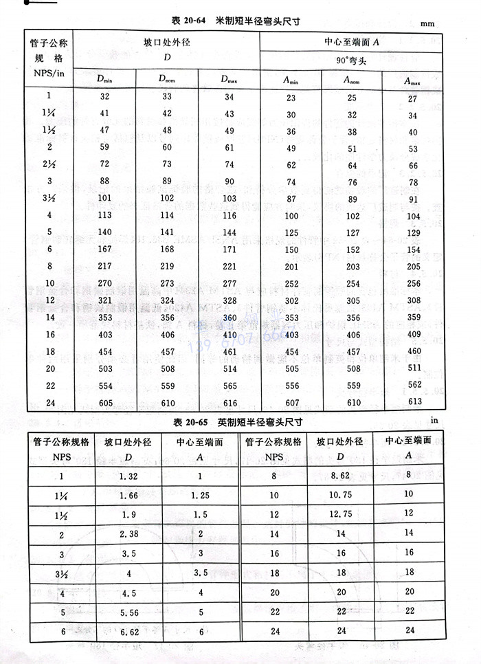 表(biao)20-64~表(biao)20-69中管(guan)件的規格采用ANSI/ASME B36.10《焊接(jie)和(he)無縫軋(ya)制鋼管(guan)》定(ding)義(yi)的管(guan)子公稱規格(NPS)表(biao)示。