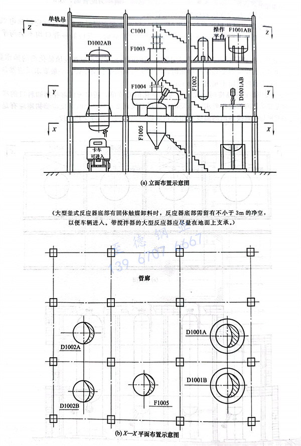 大型釜式反應器的布局(ju)設計見(jian)圖 6-13