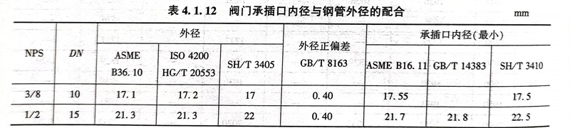 ①. 承插(cha)管(guan)件(jian),閥門承插(cha)口內徑(jing)與鋼管(guan)外徑(jing)的配合(he)見表(biao)4.1.12;