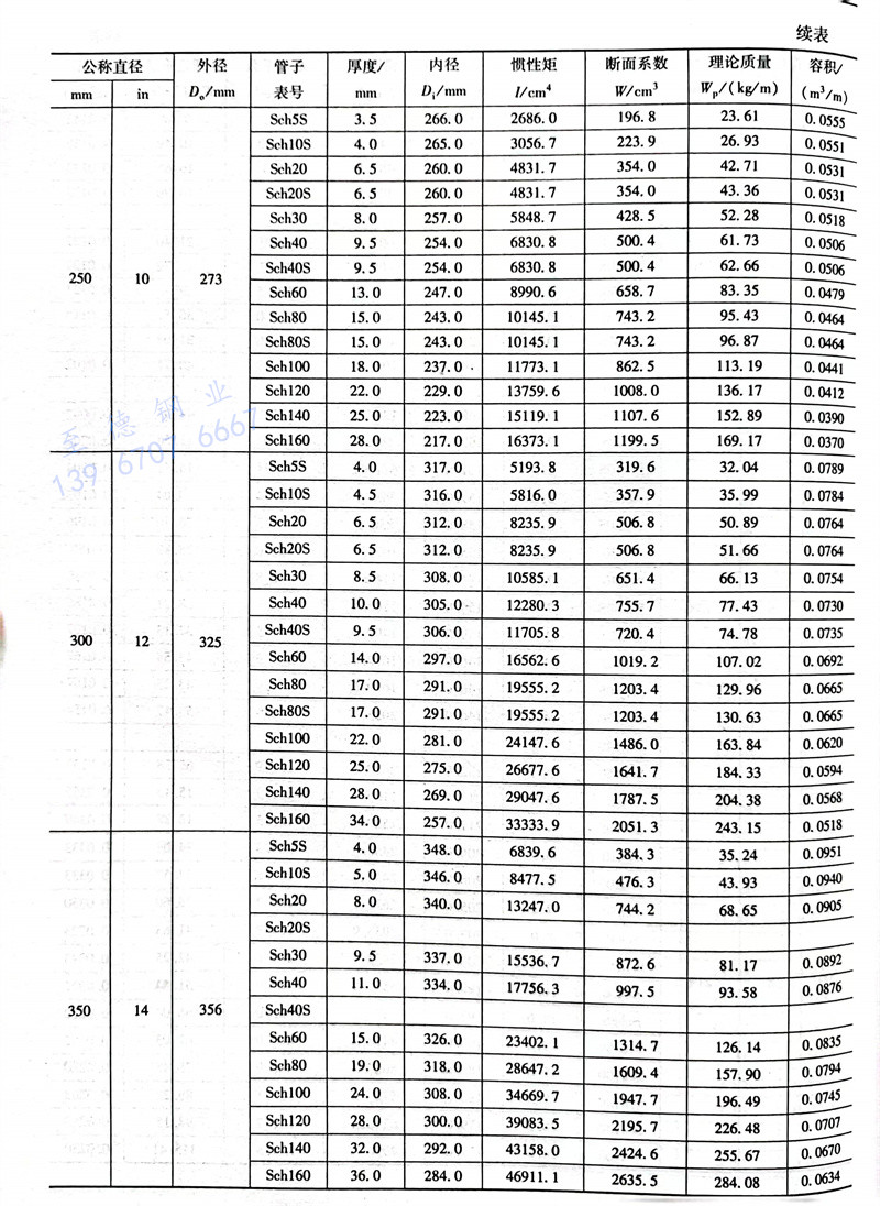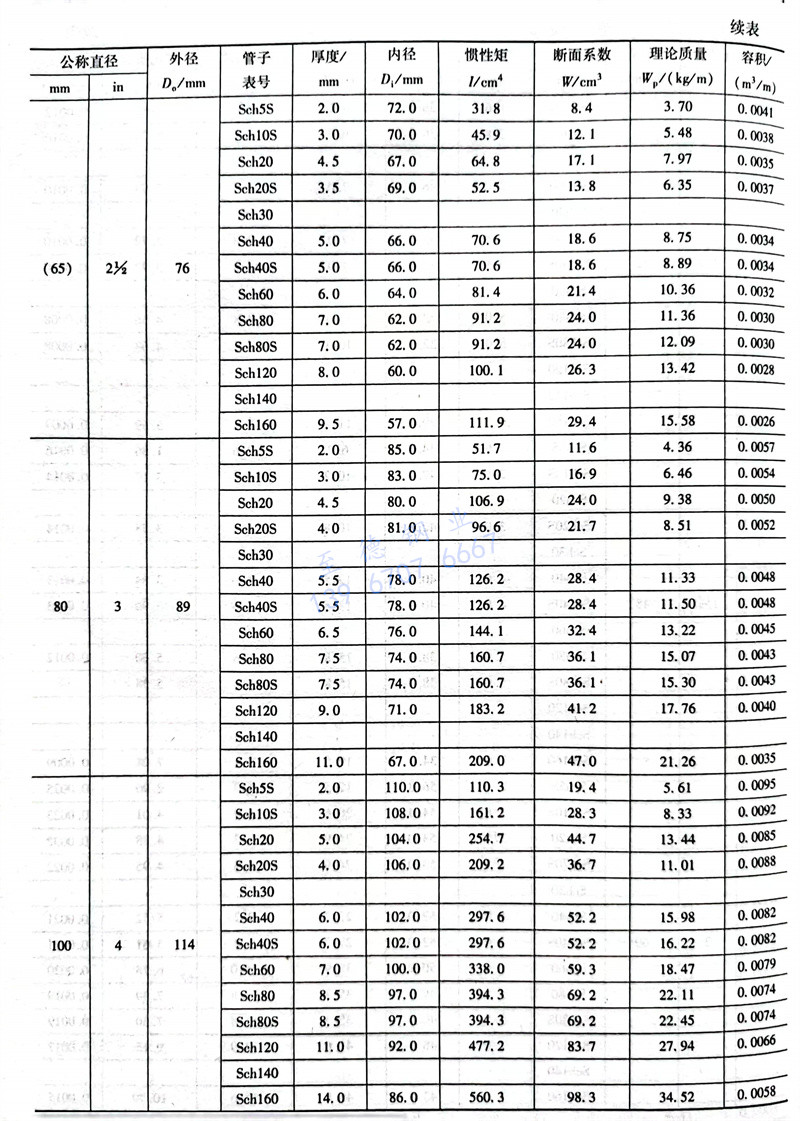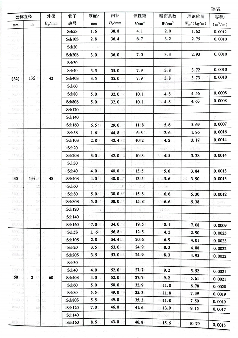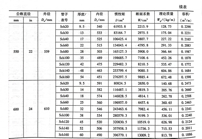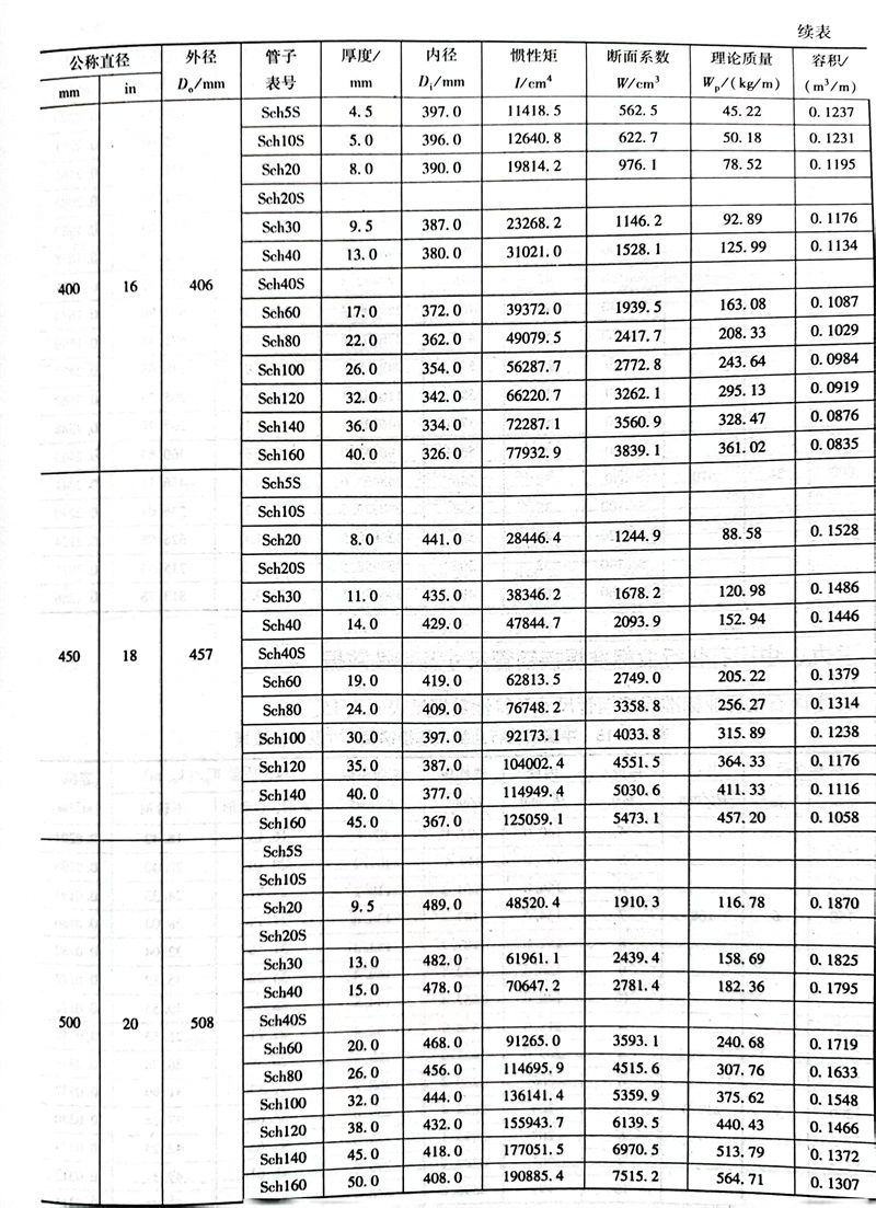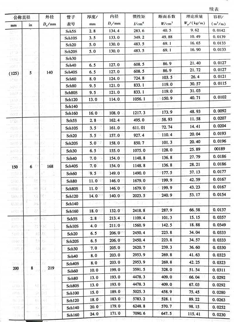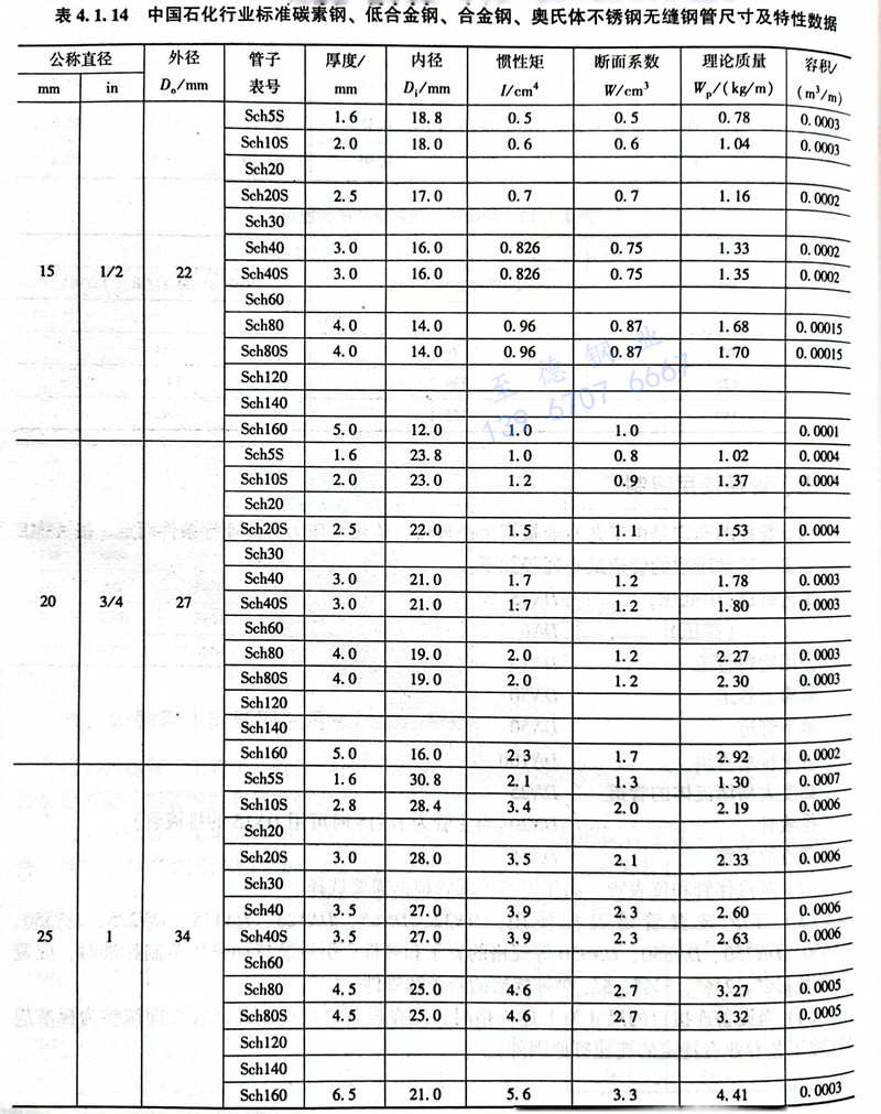 表4.1.14 中國石化行(xing)業標準碳素(su)鋼(gang)、低(di)合金鋼(gang)、合金鋼(gang)、奧氏體不銹鋼(gang)無縫(feng)鋼(gang)管尺寸及特性數(shu)據(ju)