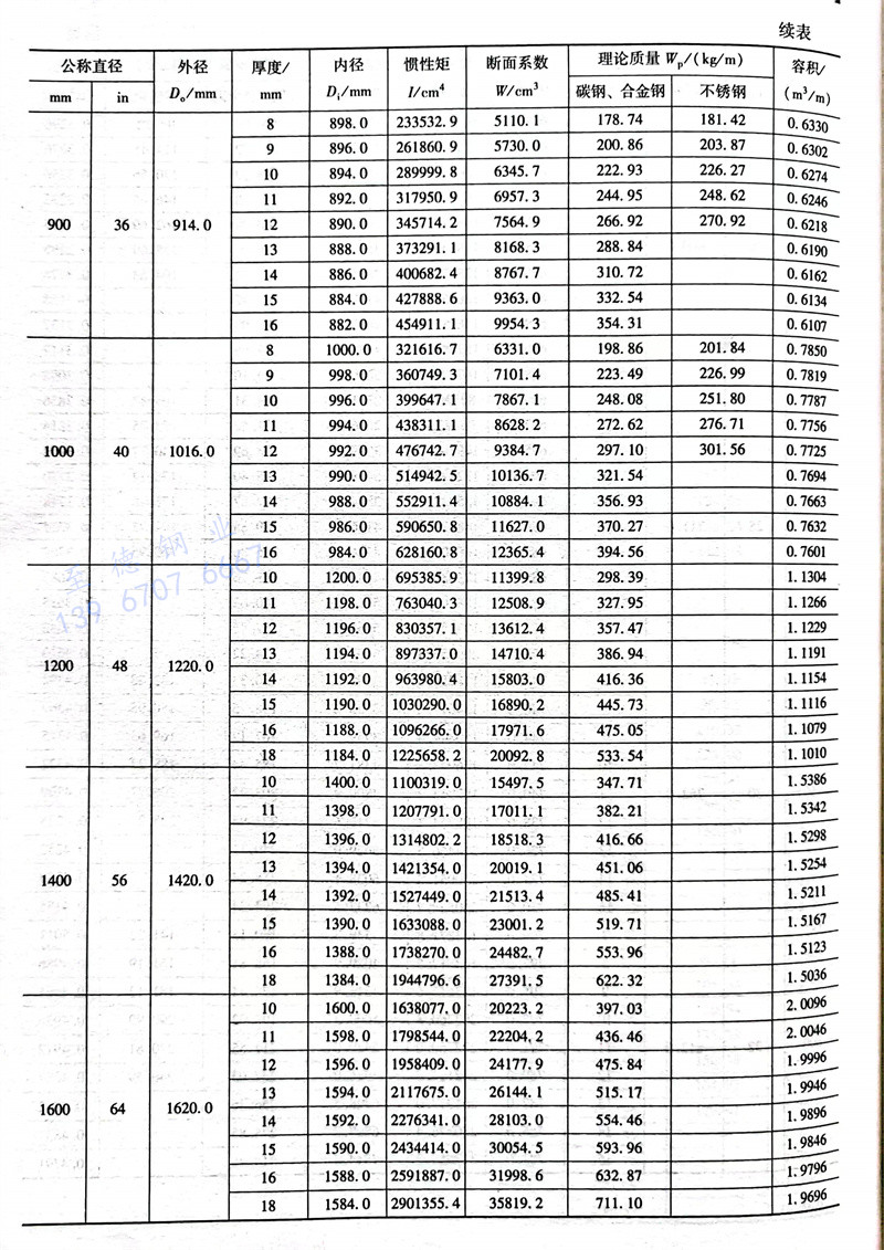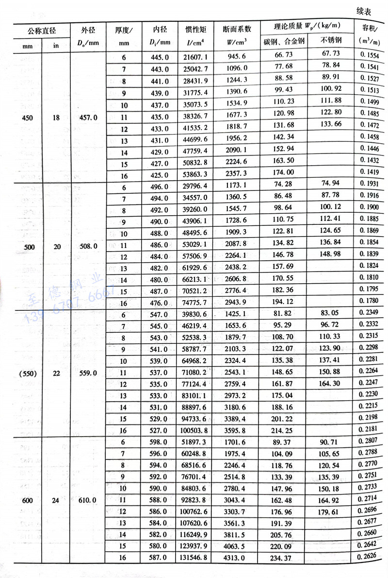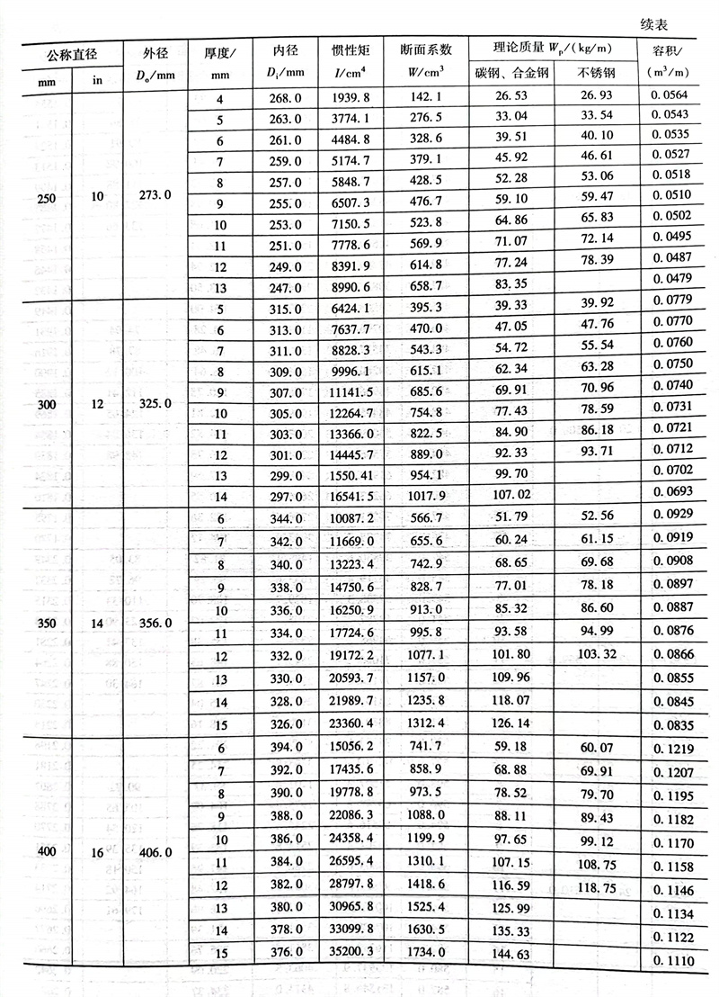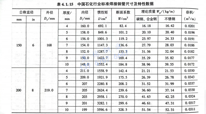 中國石(shi)化行業(ye)標準焊接(jie)鋼(gang)管尺寸及特性數(shu)據見表(biao) 4.1.15