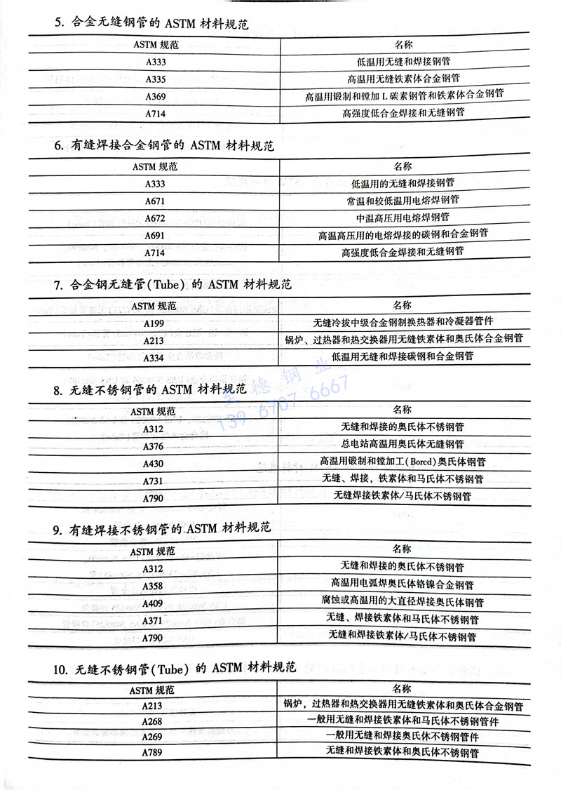 常用管子規格美標(biao)標(biao)準有:ASME B36.10M、ASME B36.19M、API5L等。具體(ti)管子材料美標(biao)標(biao)準如下所述。