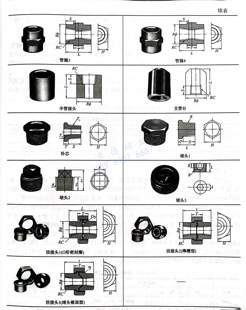 ①. 如表4.6.3中圖所(suo)示。通常情況下(xia),承插焊管(guan)件(jian)用于DN≤40mmm、管(guan)壁較薄的管(guan)子和管(guan)件(jian)之間的連接。包括彎(wan)頭、三通、加(jia)強管(guan)口、加(jia)強管(guan)接頭、管(guan)帽、管(guan)箍、異徑短節、活接頭、絲堵、儀表管(guan)口、軟管(guan)站快速接頭、水(shui)噴頭等。