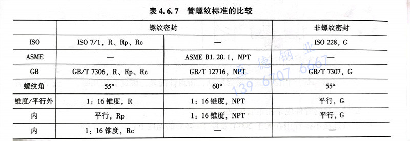 c. ASME B31.3 選用(yong)NPT,GB/T 20801 規范(fan)的(de)(de)GC2類,碳鋼管道DN40的(de)(de)壁厚為(wei)(wei)Sch80,DN50~150的(de)(de)壁厚為(wei)(wei)Sch40;不銹(xiu)鋼管道DN150以(yi)下的(de)(de)壁厚為(wei)(wei)Sch40;GB/T 20801規范(fan)的(de)(de)GC3類管道的(de)(de)各種材料(liao)小(xiao)于DN300,為(wei)(wei)計算壁厚;當用(yong)于有毒、易燃介(jie)質時,大于DN50應加安全防護(hu)。管螺紋標準(zhun)的(de)(de)比較見表(biao)4.6.7。
