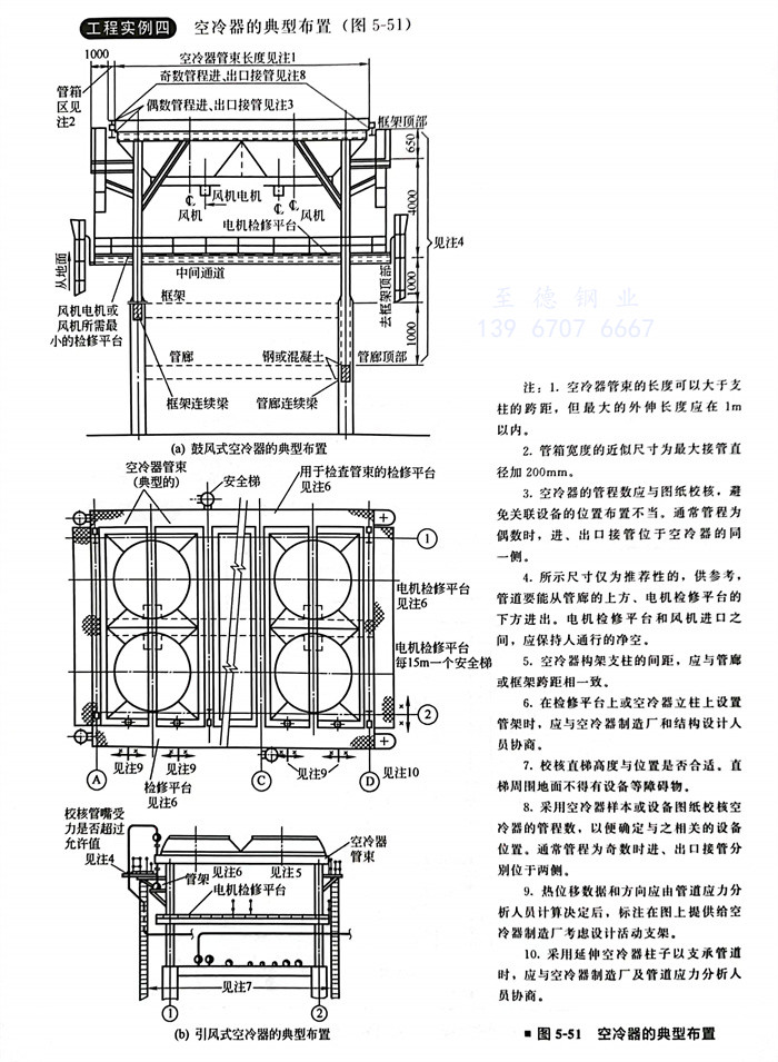 6.在檢修平臺(tai)上或空冷(leng)器立(li)柱上設(she)置管架時(shi),應與(yu)空冷(leng)器制造廠和(he)結構設(she)計人員協商。