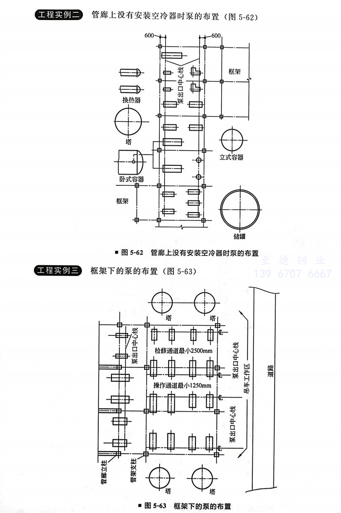 管廊上安裝空冷器時泵的布置(圖5-61)