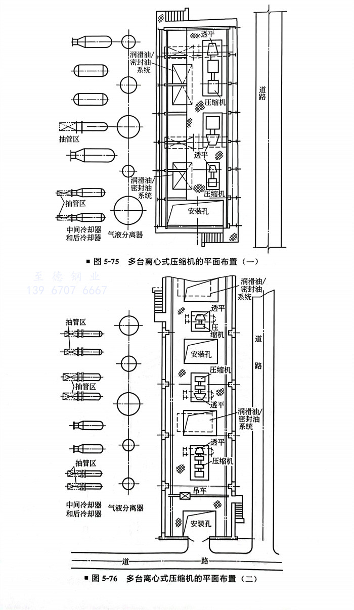多臺離心式壓縮(suo)機的平面(mian)布置(zhi)(圖5-75、圖5-76)