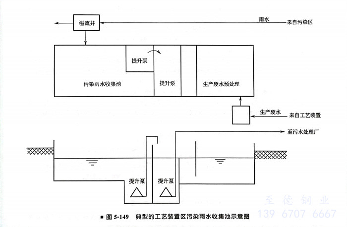 某污水處理廠工藝流(liu)程簡圖,如圖5-148所示(shi),典(dian)型的工藝裝置區污染雨水收集(ji)池示(shi)意圖,如圖5-149所示(shi)。