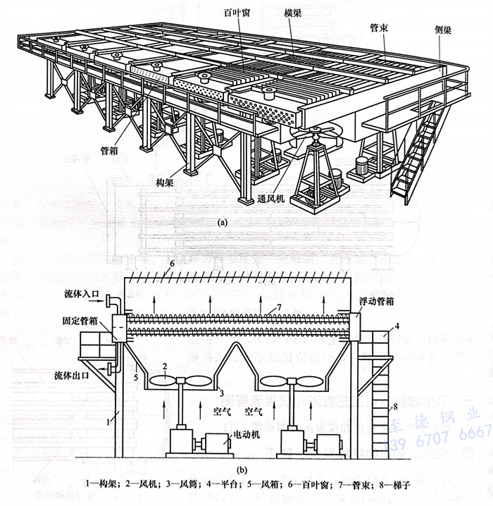 空氣(qi)冷卻(que)器主要由管束、通風機、構架及百葉窗等組成(cheng),如圖7.12所示。