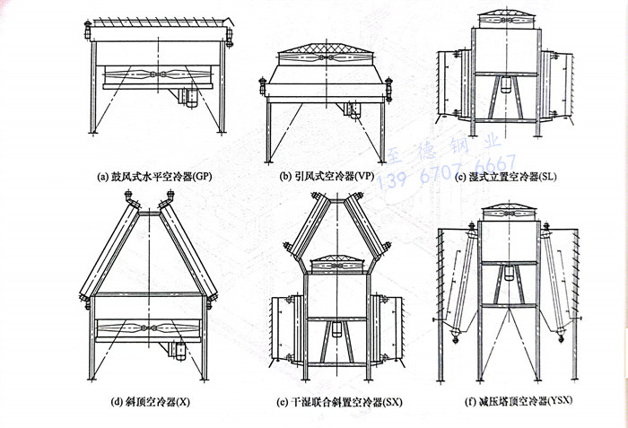 圖(tu)7.14所(suo)示(shi)為(wei)不同類型空(kong)冷器示(shi)意圖(tu)。