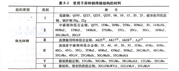 常用于異種鋼(gang)焊接結構的材料見表5-1。