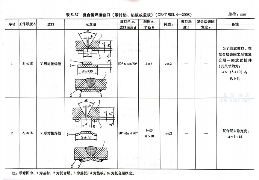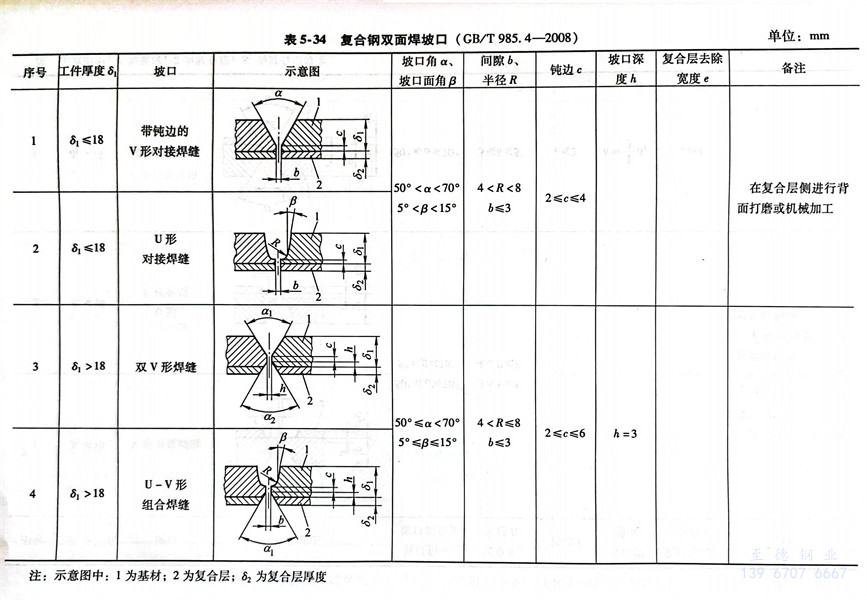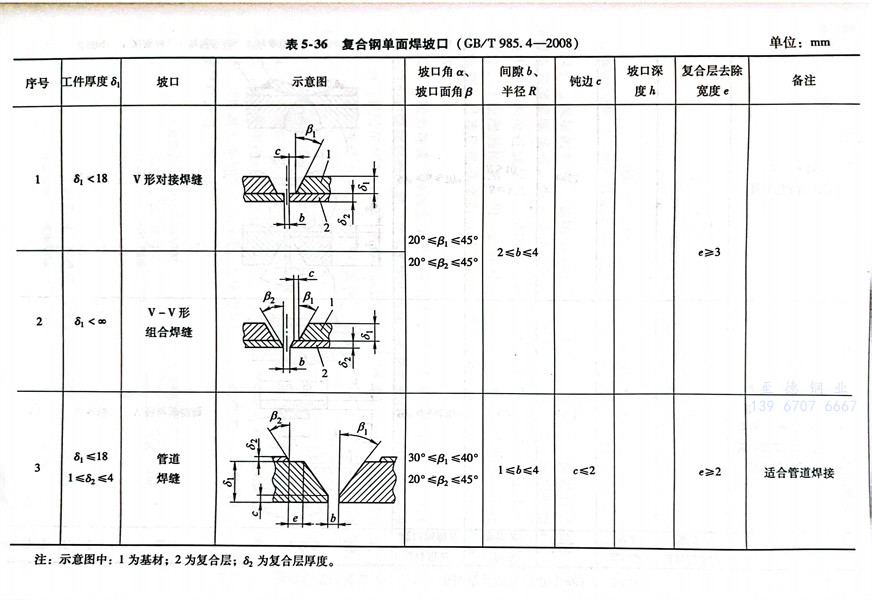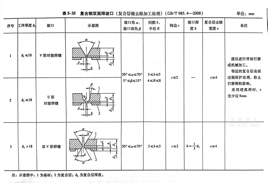 全國壓(ya)力(li)容(rong)器(qi)標準化(hua)技術委員會推薦(jian)《GB/T 985.2-2008復合鋼的推薦(jian)坡(po)口》在壓(ya)力(li)容(rong)器(qi)及受壓(ya)元件使(shi)用(yong),見表5-34~表5-37。