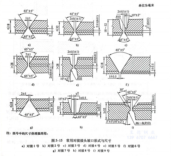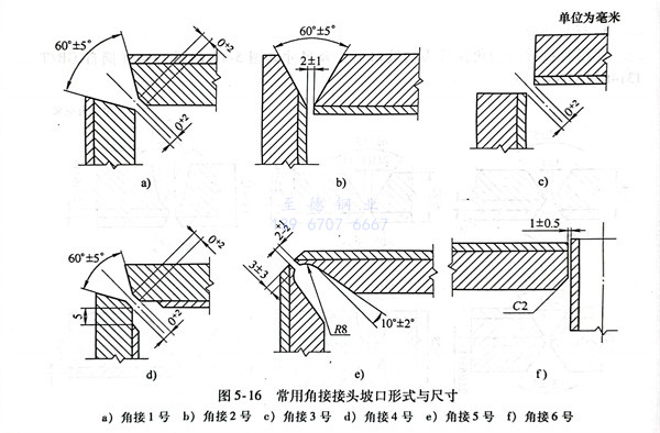 常用對接接頭和角接接頭的坡口形式及尺寸如圖 5-15 和 圖 5-16 (摘自(zi)GB/T 13148-2008)所示。