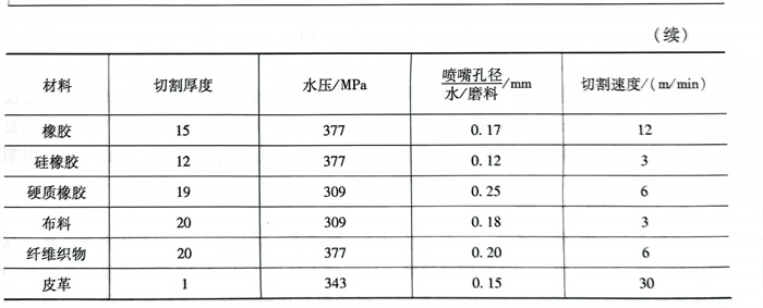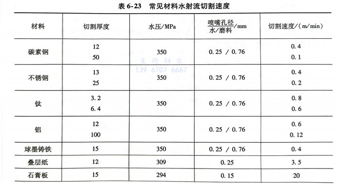 水射流切(qie)割(ge)常用的切(qie)割(ge)材料及其切(qie)割(ge)工藝參數見表6-23。