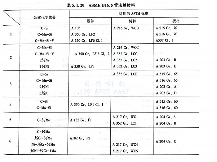4. ASME B16.5管(guan)法蘭材料(liao)見表5.1.20