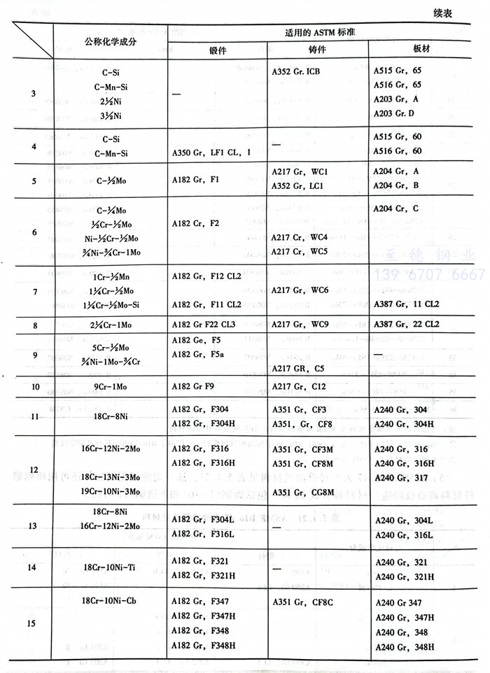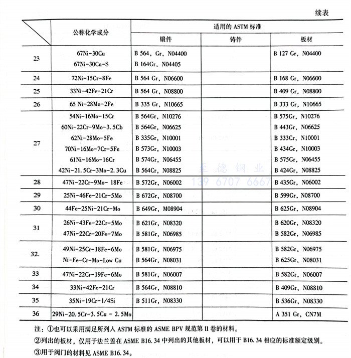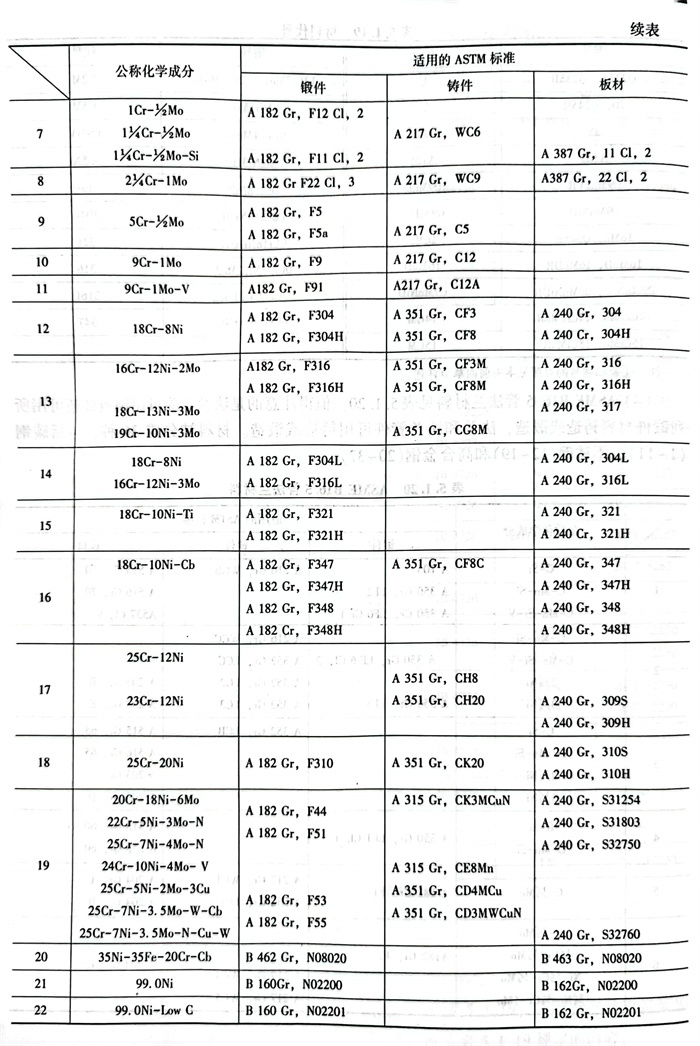 值(zhi)得注意的是(shi)法(fa)蘭(lan)(lan)蓋除可用(yong)鋼(gang)板外(wai)還可用(yong)所(suo)列鍛(duan)件材料(liao)鑄造(zao)(zao)或鍛(duan)造(zao)(zao),法(fa)蘭(lan)(lan)和(he)法(fa)蘭(lan)(lan)管件可用(yong)鑄造(zao)(zao)或鍛(duan)造(zao)(zao)。材料(liao)被分(fen)成36種(zhong),包括碳鋼(gang)(1~11),不銹(xiu)鋼(gang)(12~19)和(he)高合(he)金鋼(gang)(20~37)。